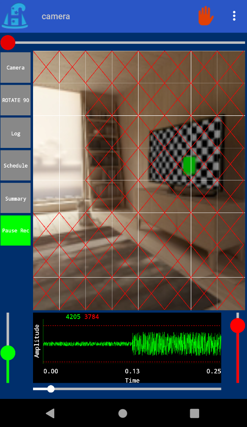 Note there are red x's on most of the screen now, except for the window area. This tells the software to only monitor the window area. This feature can be quite usefull, you may be wanting to monitor an area, but you keep getting false positives due to unwanted motion events. Simply turn those tiles on or off.